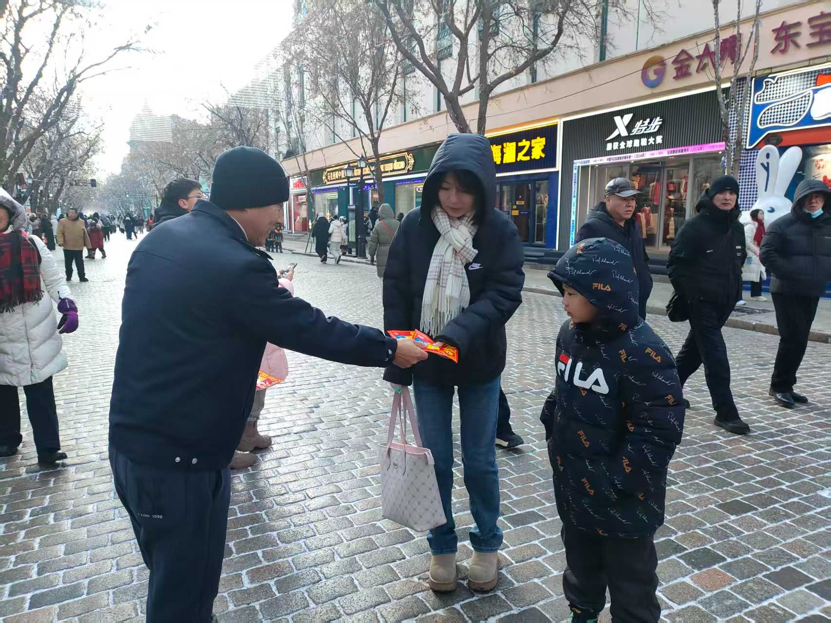 | 冬日暖心传温情 龙江旅游雷锋车队为冰城“小金豆”送暖护航 冰天雪地暖人心,雷锋精神伴旅途。2026年1月27日上午11时,哈尔滨中央大街西四道街暖意融融,龙江旅游雷锋七车队的志愿者们化身冬日暖心使者,为前来哈尔滨游玩的外地游客“小金豆”们送上专属温暖,用实际行动诠释龙江人的热情与担当。 活动现场,车队宣彦俊、刘文龙、高少东、宣忻志四位志愿者,为往来游客免费发放爱心暖贴,让这份贴心的温暖驱散冬日的严寒。同时,志愿者们还耐心为游客讲解冬季旅游安全注意事项,送上温馨问候,更主动化身“本地向导”,与游客热情交流哈尔滨特色景点、地道美食,细致指引出行路线,用专业又亲切的服务为游客的冰城之旅保驾护航。 一张张暖贴传递温情,一声声叮嘱饱含心意,志愿者们的暖心举动赢得了游客们的连连称赞。大家纷纷表示,在冰天雪地的哈尔滨,这份学雷锋志愿服务格外暖心,不仅感受到了冬日里的温暖,更对黑龙江优质的旅游服务留下了深刻且美好的印象。 一直以来,龙江旅游雷锋七车队始终践行“雷锋精神”,将志愿服务融入旅游服务的点滴之中。此次冬日暖心行动,车队以实际行动为外地游客排忧解难,在寒冷冬日传递龙江温度,既让“雷锋精神”在冰雪旅游中闪光,也为提升龙江冰雪文化影响力、擦亮龙江旅游服务金字招牌,贡献着平凡而坚定的力量。 责任编辑: 同江义工联合会